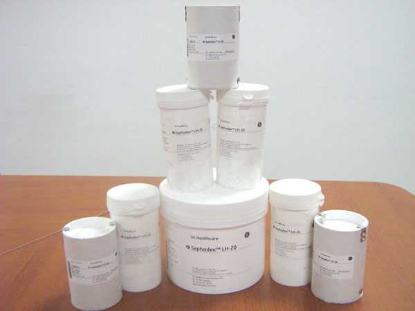 全稱為羥丙基葡聚糖凝膠。Sephadex LH-20為Sephadex G-25(葡聚糖凝膠按交聯(lián)度分類的其中一種商品型號(hào))經(jīng)羥丙基化處理后得到的產(chǎn)物,此時(shí),葡聚糖凝膠分子中的葡萄糖部分將與羥丙基結(jié)合成下列醚鍵形式: -OH → -OCH2CH2CH2OH ,與Sephadex G比較,Sephadex LH-20分子中 -OH 基總數(shù)雖無改變,但碳原子數(shù)所占比例卻相對(duì)增加了,所以Sephadex LH-20不僅可在水中應(yīng)用,也可在極性有機(jī)溶劑或他們與水組成的混合溶劑中膨潤(rùn)使用。