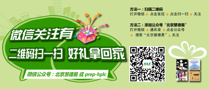 關(guān)注微信公眾號“北京慧德易”或“prep-hplc”,精美禮品送給您!
