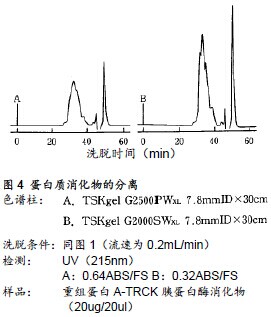 ??? 采用高性能尺寸排阻色譜法(GFC或SEC)進行多肽分離,操作簡便,不僅可用作檢測分子量的手段,還可作為純化多肽與蛋白質(zhì)分解產(chǎn)物如多肽片斷的方法之一??膳c反相色譜法(RPC)及離子交換色譜法(IEC)聯(lián)用。同時,在臨床上還通過把GFC進行比較,來推測病程的進展。