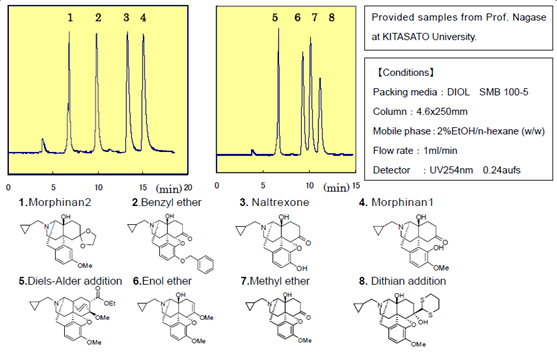 ?????? 富士公司經(jīng)過(guò)對(duì)二醇基硅膠的生產(chǎn)工藝和特性的研究,發(fā)現(xiàn)了普通硅膠在正相色譜中沒(méi)有的獨(dú)特性能。目前為止DIOL Silica已被廣泛用于分離有問(wèn)題的化合物。