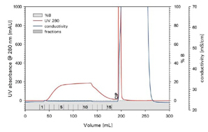 # 流穿條件:10 mmol/L Tris-HCl(pH 7.0),0.25 mol/L NaCl,多聚體從28%降低到0%。(回收率75%)