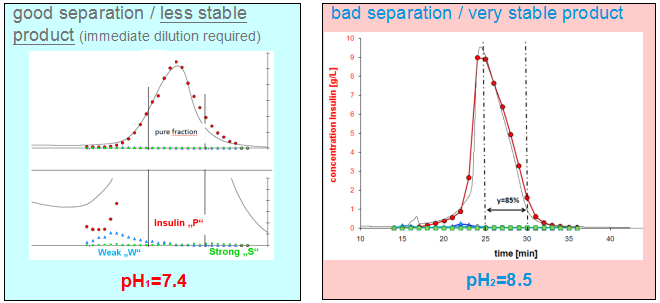 L.Aumann等通過(guò)Batch工藝,得出在胰島素精純時(shí)目標(biāo)產(chǎn)物與雜質(zhì)的分布特點(diǎn)。
