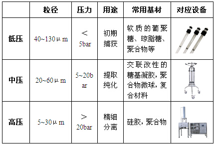 ? ??柱壓在5-20bar(或75-300psi)之間,廣泛用于實(shí)驗(yàn)室和工業(yè)規(guī)模的生物制品(如動物臟器提取液、濃縮液、體液、植物提取液、生物技術(shù)發(fā)酵液等—往往需要經(jīng)過濾膜作初級凈化)的處理,以提取或純化所需的產(chǎn)品。