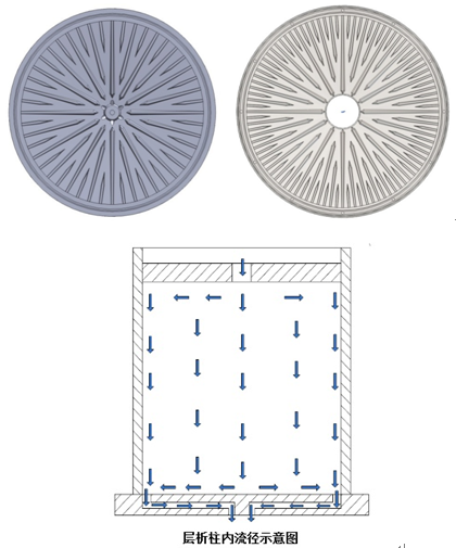 分配器按照現(xiàn)代機(jī)械設(shè)計(jì)先進(jìn)理念進(jìn)行的,流體動(dòng)態(tài)仿真、優(yōu)化設(shè)計(jì)、可靠性設(shè)計(jì)、虛擬設(shè)計(jì)、三維造型、產(chǎn)品全壽命周期設(shè)計(jì),使得產(chǎn)品性能得到有一種單一的中央噴口和一種徑向?qū)Я鞑?。防直噴的噴口與導(dǎo)流槽做在了一起,定位在每個(gè)單元的中心,防止噴出的液體直接進(jìn)入柱管而不通過分配器。獨(dú)特的分配器設(shè)計(jì),保證所有流徑長(zhǎng)度相同,從而更有效地保證分配效果。