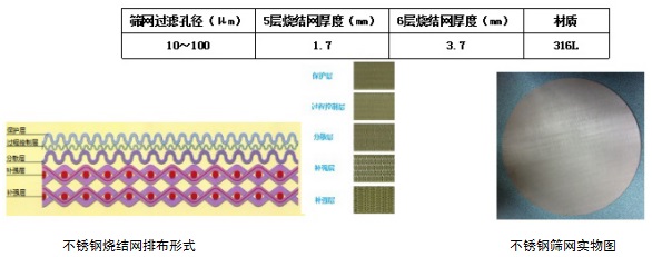 上下篩網(wǎng)為多層結(jié)構(gòu)的不銹鋼燒結(jié)網(wǎng)。 與聚乙烯篩網(wǎng)不同:聚乙烯篩網(wǎng)為疏水性質(zhì),需要在裝柱前充分潤(rùn)濕,而不銹鋼篩網(wǎng)則不需要提前潤(rùn)濕。不銹鋼燒結(jié)網(wǎng)由保護(hù)層、過程控制層、分散層及2~3層補(bǔ)強(qiáng)層燒結(jié)而成。