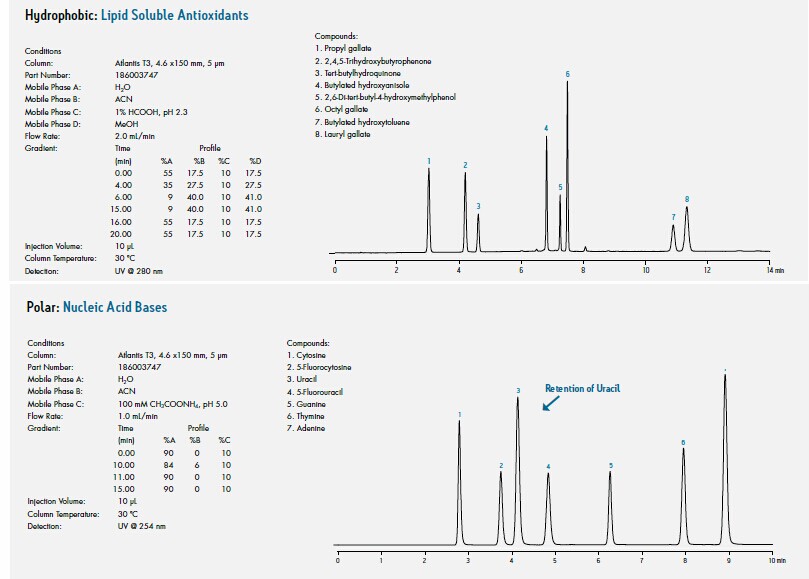 Atlantis色譜柱用以解決最具挑戰(zhàn)性的色譜難題之一:保留極性化合物?;跉v史經(jīng)驗與合成創(chuàng)新,Atlantis色譜柱在為極性化合物提供優(yōu)異性能、通用性、保留能力與色譜穩(wěn)定性方面具有行業(yè)內(nèi)領(lǐng)先水平。此外,它還為具有極性范圍跨度大的混合物樣品提供了具有平衡性的保留能力。Atlantis dC18是第一代的Atlantis系列色譜柱。